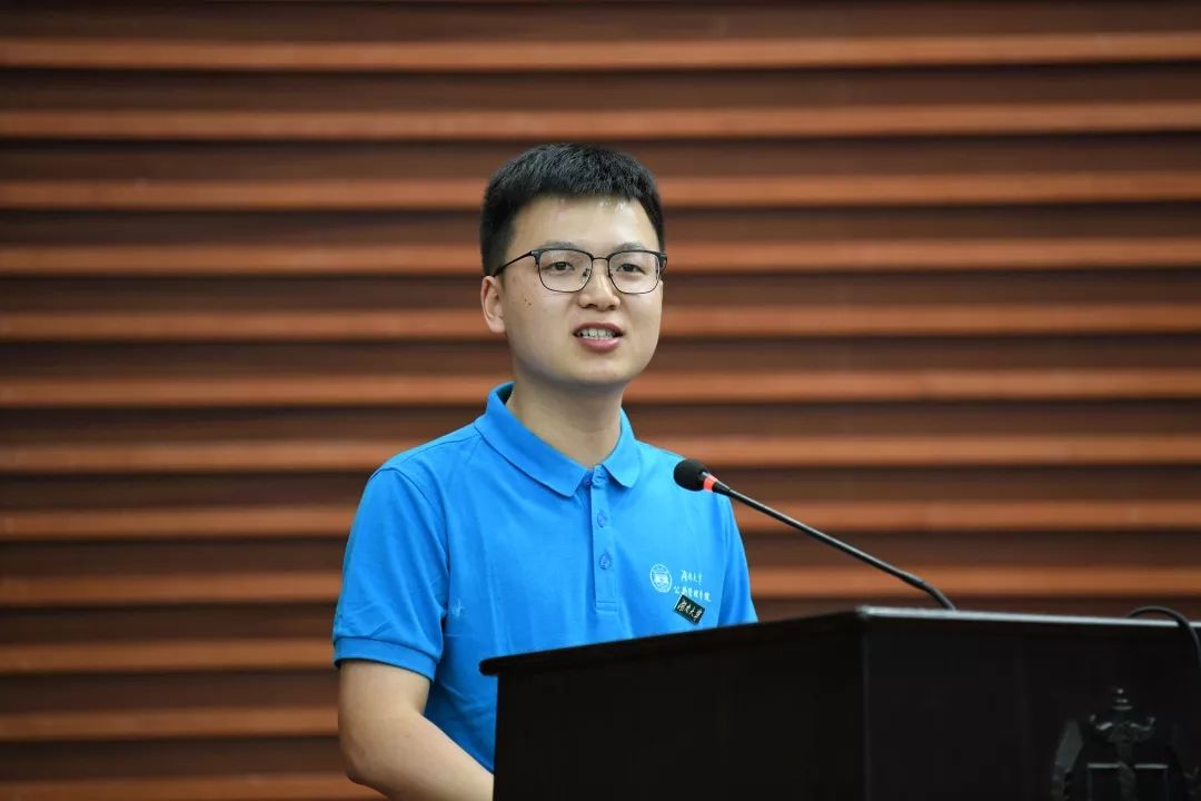 学生代表郑腾飞同学表达了对成为一名湖大学子的珍惜、骄傲和憧憬:“从今天起,我们都有了一个共同的名字——湖大学子,在这所'千年学府、百年名校'中重拾课本,聆听老师们的谆谆教诲,去感受文化的多元与醇厚,来提升我们的个人竞争力,”更体现了作为一名公管学子和青年的理想、坚持和信仰,“在前进的路上,让我们不断发扬斗争精神,增强斗争本领,秉持'实事求是,敢为人先'的校训精神,奋力拼搏,努力积聚创新能力,担当时代责任,勇立创新潮头,在国家创造发展中做出应有的贡献。”