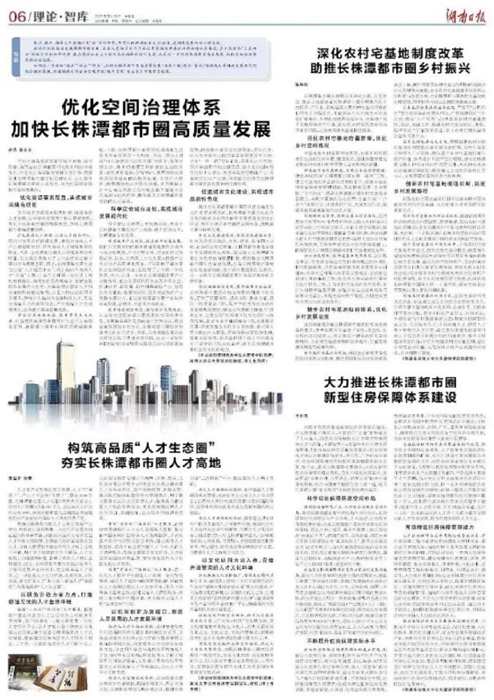 城市管理专业团队建言献策。相关专家学者围绕优化空间治理体系、构筑高品质“人才生态圈”、深化农村宅基地制度改革、推进新型住房保障体系建设等议题撰写的资政文章由2022年5月26日出版的《湖南日报》理论智库版整版刊发。