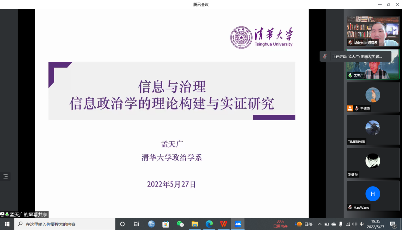 孟天广老师的精彩分享引发参会同学热烈讨论,张权、丁恒等师生分别就“信息政治学对’平台’的解释”、“数字化对于基层选举的影响”、”信息能力与数字能力之间是何种关系“等若干问题进行了提问,孟天广老师一一予以耐心细致的解答。
