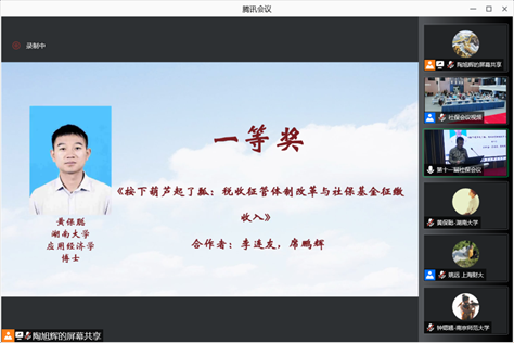 李连友教授带领博士生黄保聪参与了本次论坛,他们与中国社会科学院财经战略研究院席鹏辉副研究员共同创作的论文——《按下葫芦起了瓢:税收征管体制改革与社保基金征缴收入》在众多学术研究中脱颖而出,荣获本次论坛的一等奖。