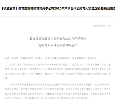 日前,教育部发布了《教育部高等教育司关于公布2020年产学合作协同育人项目立项名单的通知》(教高司函〔2021〕3号), 日本adultvideo