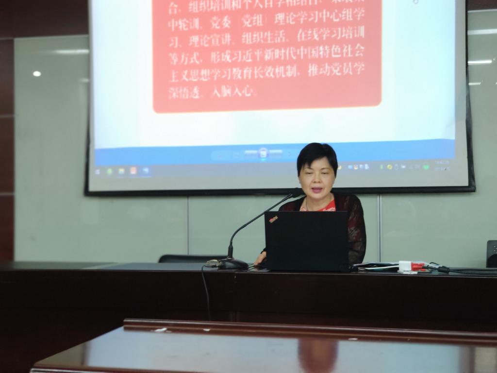 会上,付蓉芬结合《中国共产党党员教育管理工作条例》原文,以图解的方式带领教工党员学习《中国共产党党员教育管理工作条例》要点,号召党员学习贯彻习近平新时代中国特色社会主义思想,明确党员教育基本任务,讲解党员日常教育管理主要方式。“《条例》对党员教育管理工作提出了许多新的要求,希望各党支部书记认真学习,落实‘三会一课’制度,不断加强党支部‘五化’建设,做好党员教育工作!”。