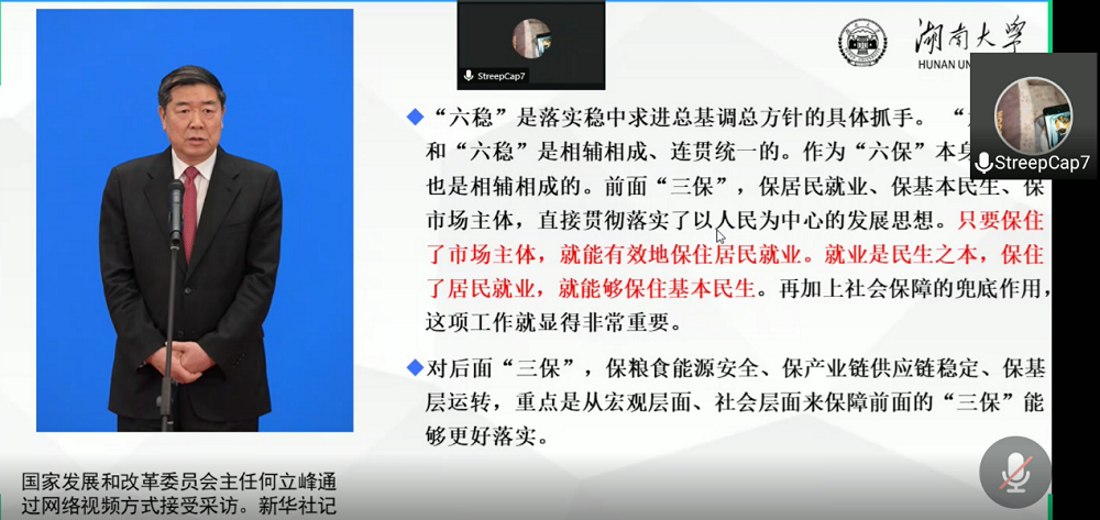 会议过程中,同志们就两会以来 “市场准入负面清单制度”、“地摊经济”、“保障就业”等热点问题纷纷基于自身专业知识、实际生活经历等发表自己的体会与看法。杨翱飞等同志提出,今年政府工作报告中没有设立具体的经济发展目标,而是更多地将工作重心放在稳就业、保民生、促增长的民生方面,反映了党和国家朴实沉稳,一心为民的治国理念。石一琨同志特别强调,推动“地摊经济”绝不是开历史的倒车,而是适应国家治理体系和治理能力现代化的重要转变。费梓萱等同志基于自身学科知识,就全面推进市场准入负面清单制度的政策理念和实践进行了全面地讨论。针对任诗程等同志对保障就业政策的讨论分享,王浩鼓励同学们坚定信心,提升自我,寻找机会,同时主动将个人追求融入到国家发展大潮流中,激流勇进,为国家发展贡献自己的一份力。