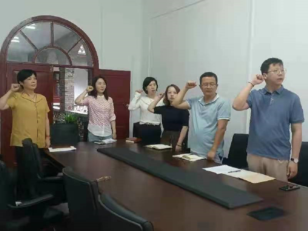 首先,在支部书记李释然的带领下,支部党员重温了入党誓词。