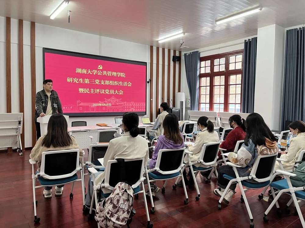 硕士研究生第三党支部在学院221室开展了2021年度民主评议会,会议由支部书记王浩同志主持。会上,支部成员共同学习了系列重要文件与会议精神,并开展批评与自我批评,对各方面存在的问题进行剖析。