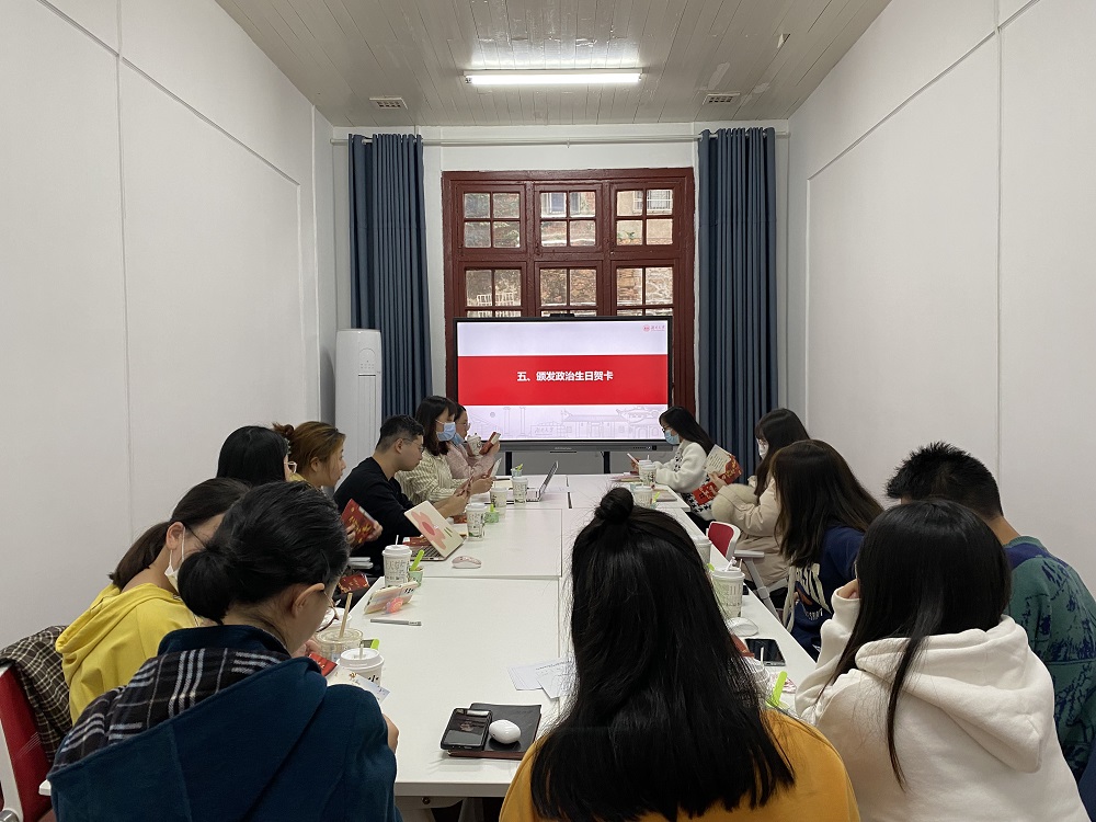 观看完党员教育片后,支委为支部全体党员同志送上“政治生日贺卡”,集体过“政治生日”、重温入党誓词,这更加坚定了支部成员不忘入党初心,牢记党员身份的信念。