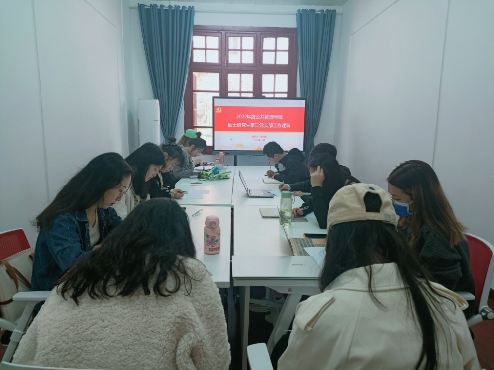 硕士研究生第二党支部在院楼214会议室召开2022年度组织生活会暨民主评议党员大会。支部书记张佳乐主持会议,支部全体党员参加。