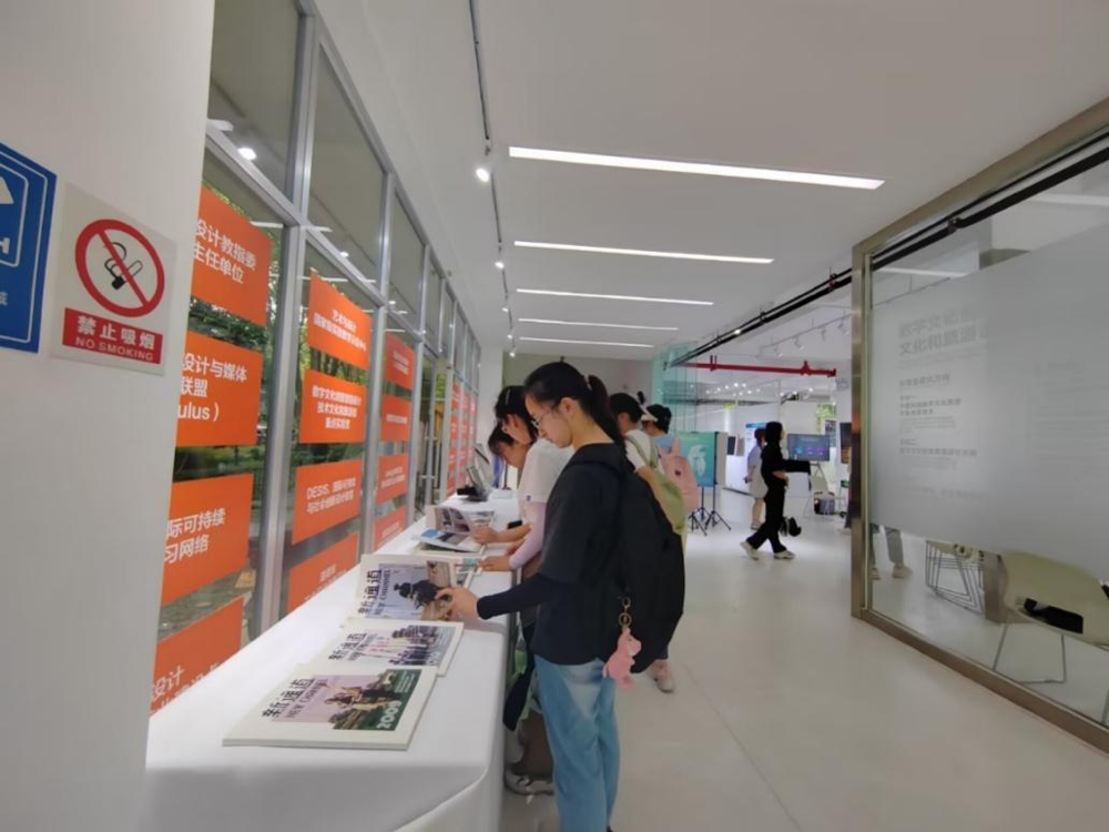 设计艺术学院,开展了一次别有趣味的主题团日活动。同学们在活动大厅集体观看了设计艺术学院助力湖南隆回白水洞村乡村振兴的宣传片,各位同学对富有民族特色的花瑶花系列文创产品、精美的长沙窑系列作品等颇感兴趣,并主动向负责人深入了解其背后的故事。最后,团支部的同学们自由参观了整个展厅。