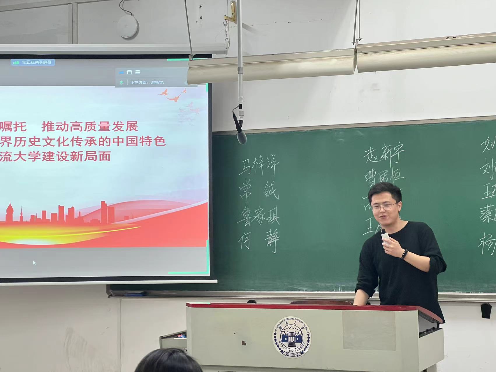 最后,赵新宇同志希望各位支部成员全面准确学习领会党代会的精神内涵,持续掀起学习宣传贯彻热潮,切实把思想和行动统一到大会决策部署上来。要深刻领会富有历史文化传承的中国特色世界一流大学建设之路的内涵要义,准确把握高质量发展“七大内在要求”和“四个统筹好”,按照新征程新阶段“强基础、提质量、开新域”的总体思路,聚焦实施高质量发展“五大行动”、高质量党建“六大任务”的整体部署,全面贯彻党的教育方针,认真落实立德树人根本任务,不断增强基层党组织政治功能和组织功能,以高质量党建引领学校高质量发展,奋力开拓富有历史文化传承的中国特色世界一流大学建设新局面,全面充分吸取课程精华,丰富个人理论,扎实思想之基。