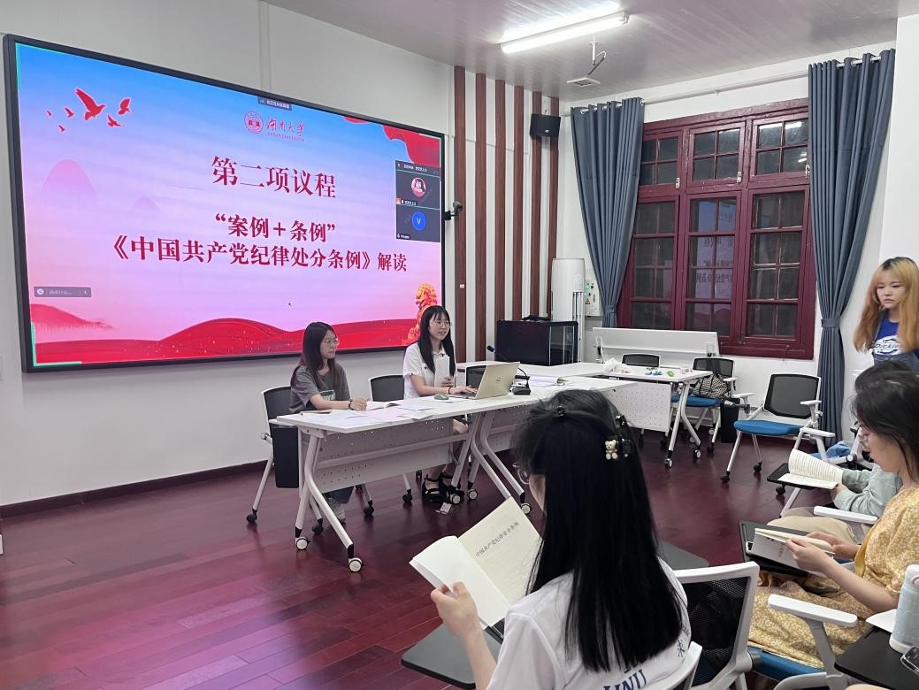 硕士研究生第二党支部在院楼221会议室“学思践悟党纪,筑牢思想防线”党纪专题学习研讨会。党支部书记张佳主持活动,支部全体党员参加。
