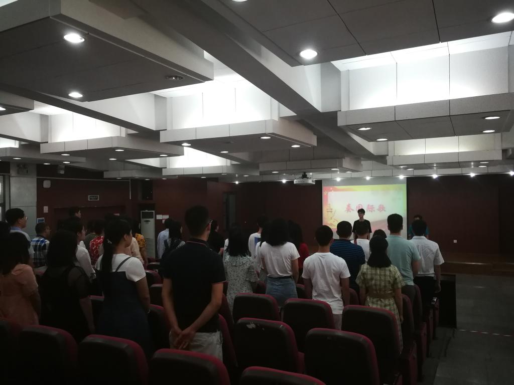 2019年上半年新发展党员名单,并对新党员提出要求,嘱托新党员同志们要努力学习、认真工作,为其他同学做好表率,带领学生群体积极向我党靠拢。随后,全体新发展党员在本科生党支部书记王浩同志的带领下面向党旗庄严宣誓。