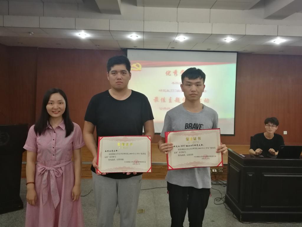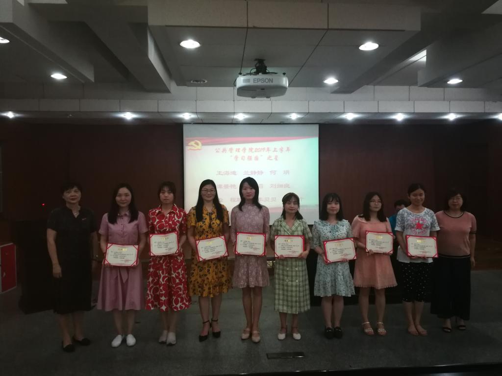 在大会表彰环节,副院长雷玉琼同志宣读了表彰决定。本科生党支部与研究生2017级公共管理党支部被评为“先进学生党支部”;公共政策研究联合党支部获评“最佳主题党日活动”。