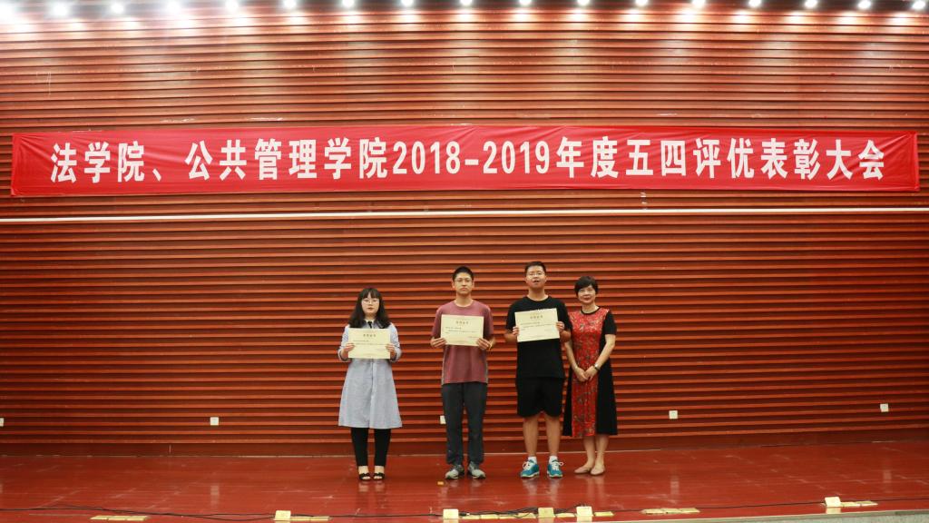 、法学院2018-2019年度五四评优表彰大会在法学楼报告厅隆重举行。大会对过去一年团学工作中涌现出的先进集体和个人进行了表彰与颁奖,五四红旗团支部代表、最佳主题团日活动代表、优秀三下乡团队代表等做风采展示。