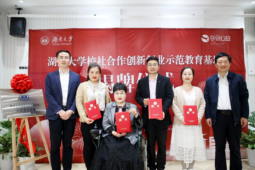 为李丽、葛鹏、万强和裴玲等4位校外“双创”导师颁发聘书。同时,李连友院长受聘为湖南乐创公益慈善发展中心专家顾问。双方借此机会,互聘互促,为进一步深化合作提供有力支撑。