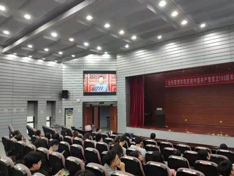 学院党委组织师生党员、入党积极分子,团委学生会研究生会各部门在法学楼报告厅、北校区水教203教室共计两个场次集中收听收看庆祝中国共产党成立100周年大会现场直播,并组织召开座谈会。