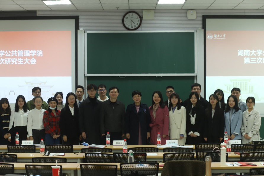 研究生会的组织架构在不断完善,在过去的一年取也得了较好的成绩。希望第三届研究生会成员发扬第二届研究生成员积极肯干的精神,让学院的工作在上一个新台阶。并表示未来的重点是要突出学院的思想政治工作,并以学术和就业两大板块为抓手,开展特色研究生活动。