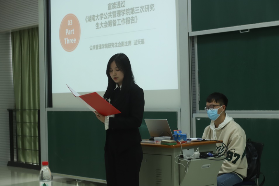 根据大会议程,学院研究生会副主席过天瑶做《第三次研究生大会筹备工作报告》、研究生会副主席黄家晨做《第三次研究生大会资格审查报告》、研究生会主席林男做《第二届研究生会工作报告》,研究生会科研创新部负责人吴高鹏以及综合服务部负责人叶珺洁分别宣读《 日本adultvideo
