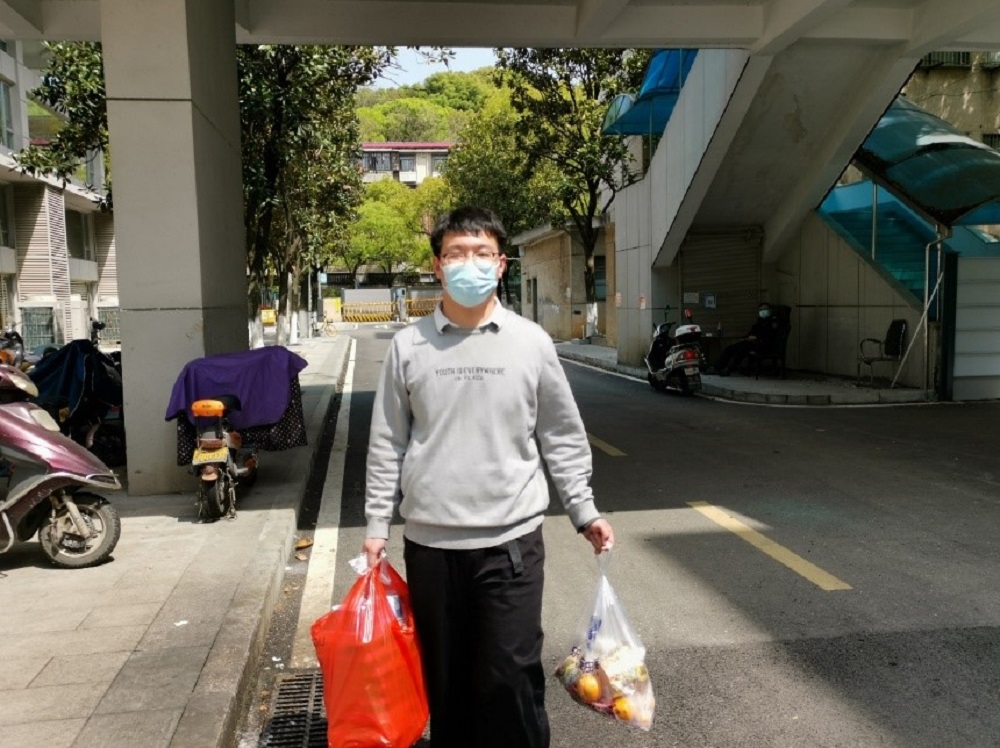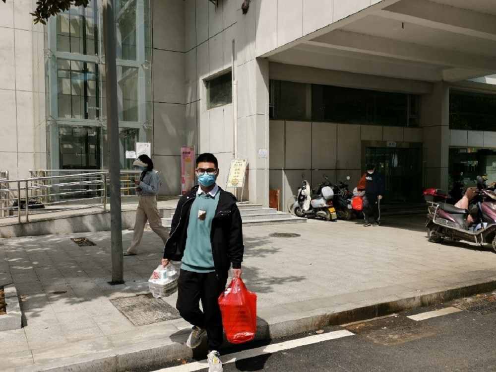 2020级硕士研究生史钰宏同学,志愿负责所在楼层红黄码寝室,三餐带饭工作。