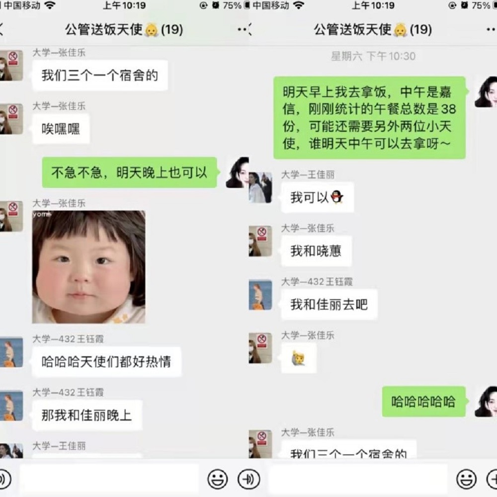 每一位同学手上,极大地保障、方便了同学们封校期间的饮食。