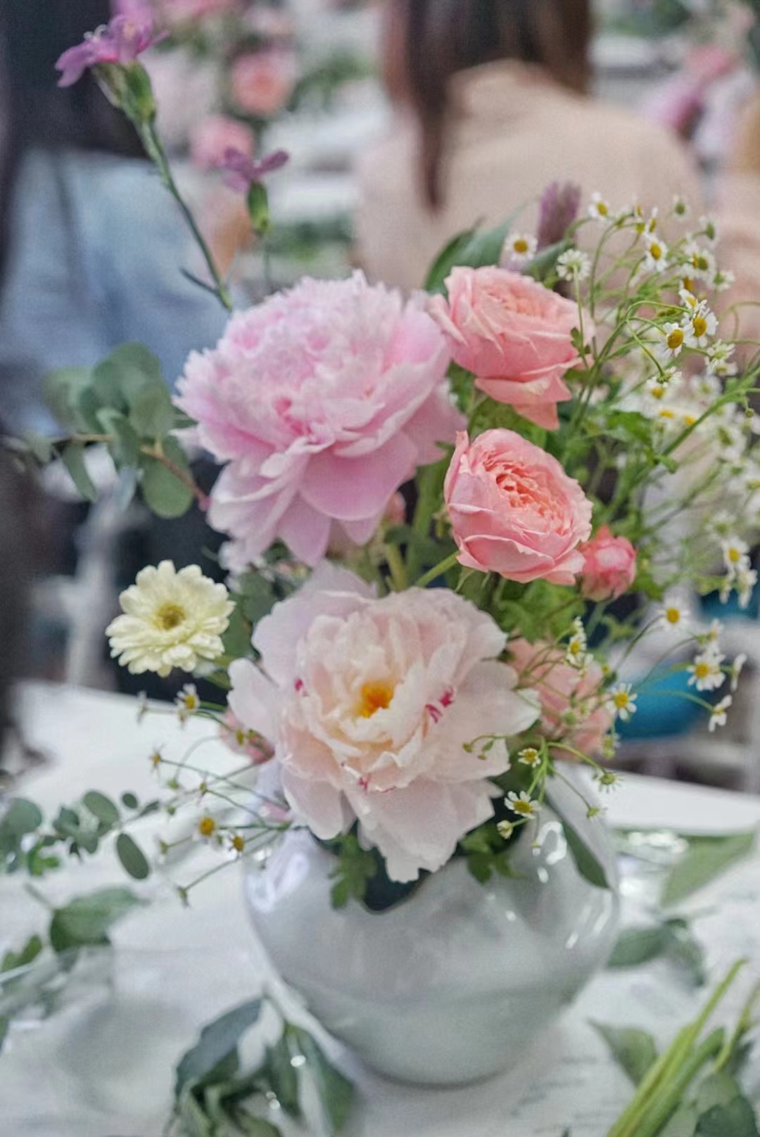 在花艺老师的悉心指导下,老师们运用灵巧双手巧妙搭配,修剪枝叶,一个个生机盎然的插花作品呈现在眼前令人赏心悦目。看着自己亲手创作的插花作品,大家感到满满的成就感和幸福感,纷纷拍照合影留念。