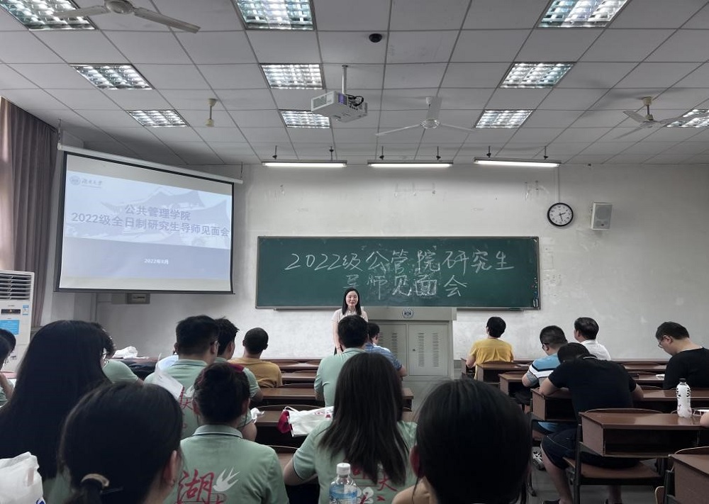 于2022年8月25日下午在复临舍307召开导师见面会。本次见面会由2022级研究生辅导员杨锦滔老师主持,院长李连友、党委书记付蓉芬、副院长谭海波、党委副书记杜倩博以及2022级全日制研究生导师出席了此次见面会,学院2022级全体研究生参加。