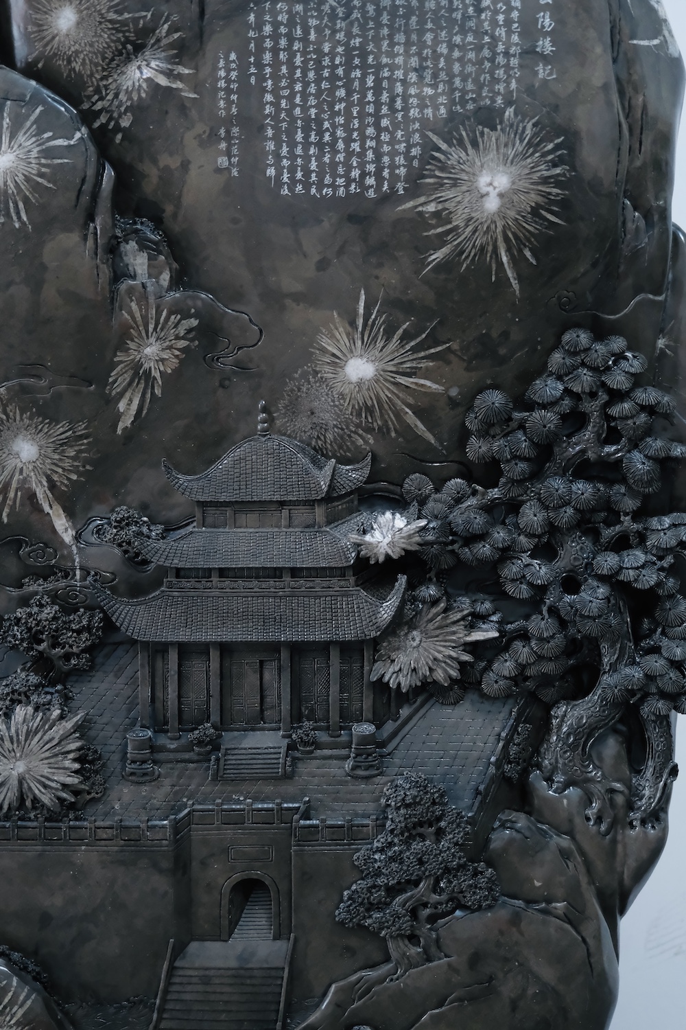 雕者,心以载道。这块精美菊花石的雕刻设计出自中国工美行业艺术大师之手,石上雕刻着层峦叠嶂、玉树琼花,在山水映衬下突出雕刻着驰名中外的岳阳楼。石刻右上方雕刻着范仲淹的《岳阳楼记》全文,字体隽秀清雅、潇洒灵动,与精致的雕工融为一体,文字与纹饰相互辉映,构成一块精美绝伦的斑斓菊花石。这块“岳阳楼记”菊花石,寄托着校友对学院的诚挚祝愿,所蕴含的思想精髓与 日本adultvideo
