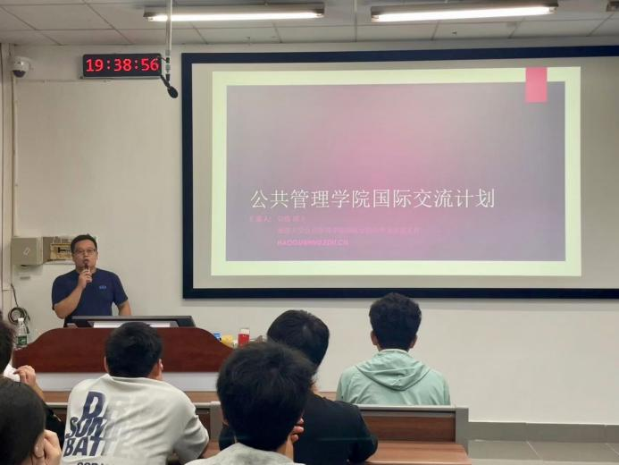 的谷浩老师结合学院的学科特色和发展规划,从学院全英文课程体系、海外移动课程设置、优秀海外校友等方面进行了全面介绍。