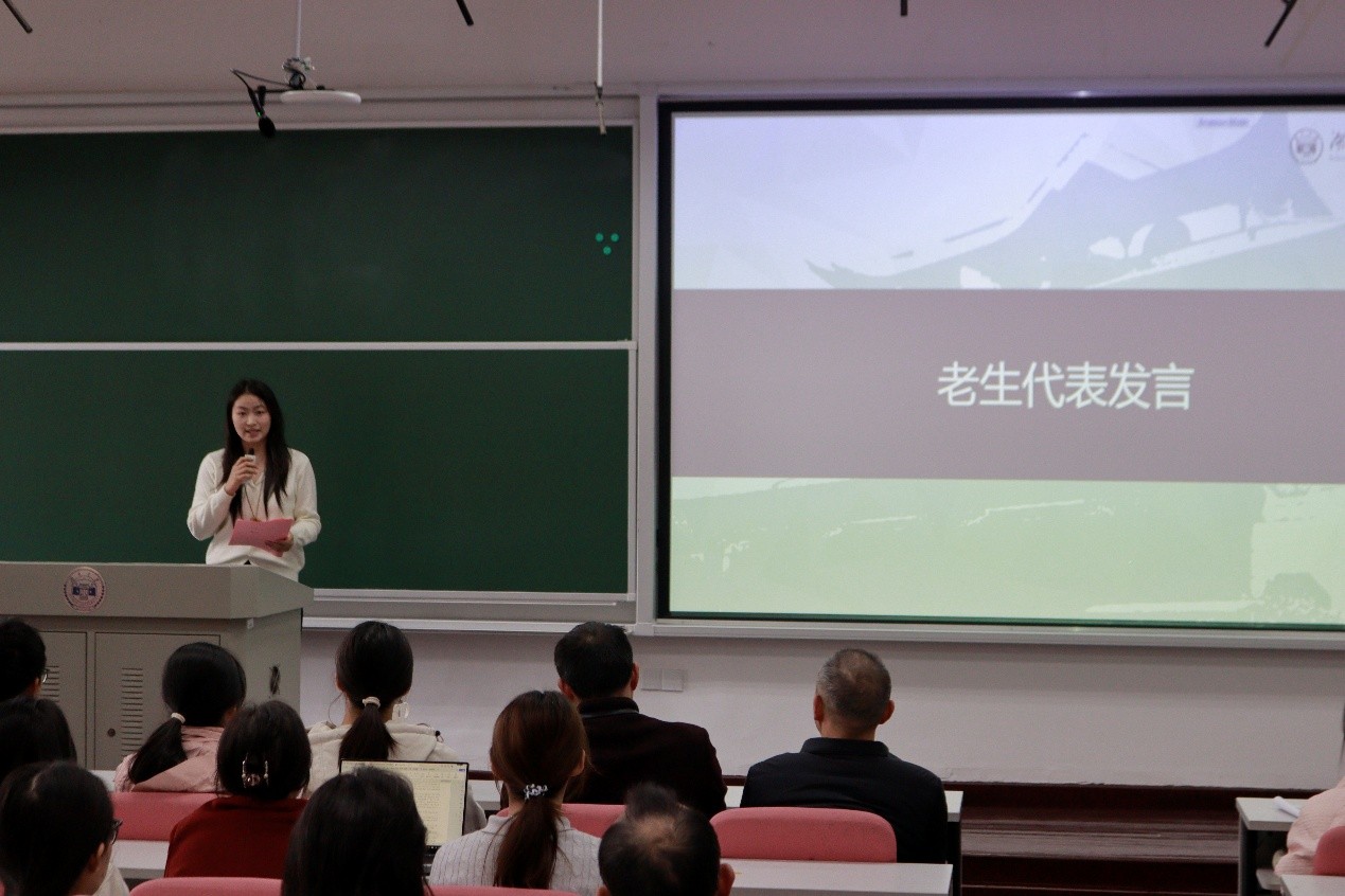 (老生代表刘玉萍同学发言)