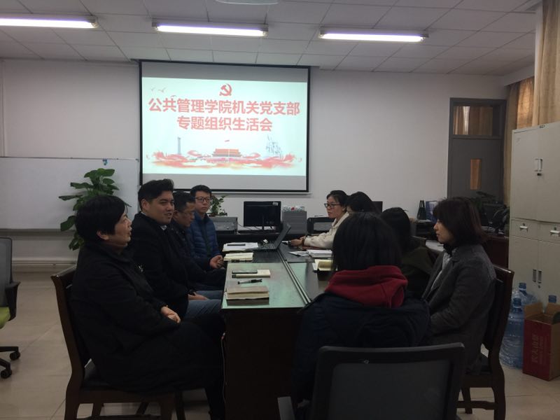 机关支部召开了“不忘初心•牢记使命”专题组织生活会暨民主评议党员大会。本次会议,由党支部书记李释然主持,院党委书记付蓉芬及机关支部全体党员参加了会议。