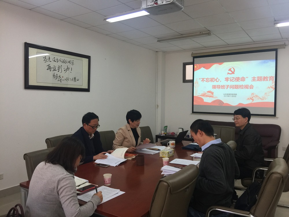 党委召开“不忘初心、牢记使命”主题教育领导班子问题检视会,学院党委书记付蓉芬主持会议、院长李连友及其他院领导参加了会议。