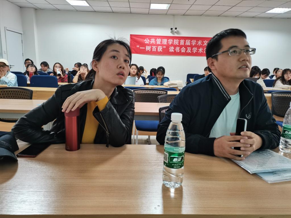 副教授胡赛全老师,助理教授程聪慧老师出席并担任评议嘉宾。在行管1901班学习委员魏新主持下,行管1901班和1902班同学分别对欧文·休斯所著的《公共管理导论》和威廉·邓恩所著的《公共政策分析导论》进行了感悟和思考的分享。
