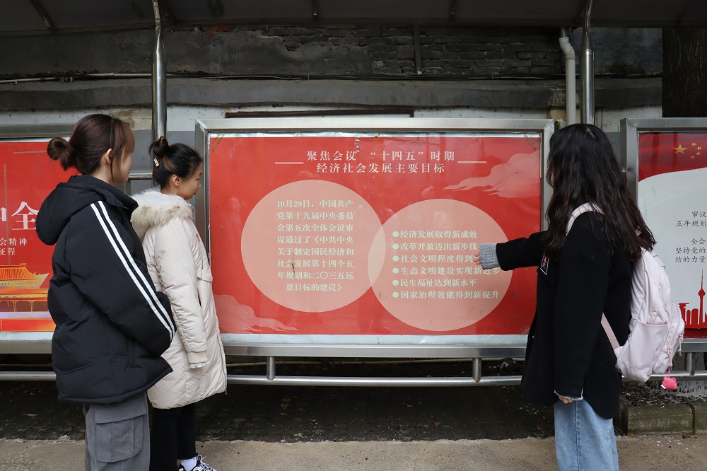 随后,同学们在橱窗宣传现场向往来的同学介绍廉洁知识、讨论十九届五中全会重要内容。同学们纷纷表示要进一步坚定理想信念,切实把十九届五中全会精神转化为推动各项工作的强大动力,进一步推动学院创新发展。滕瑞博同学表示:“浏览了关于廉洁和十九届五中全会的海报之后,首先真的感觉在党的领导下中国人民取得的成就以及未来的宏伟蓝图,其次我也意识到要想完成我们的强国梦想,坚持反腐败是不可缺失的。”