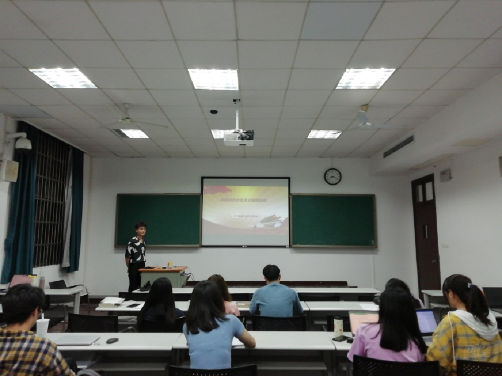2021年5月7日晚8点,2019级硕士研究生党支部于教学中楼102室开展“中国特色社会主义制度自信”学习活动。本次学习活动由支部书记周杨康主持,全体支部党员同志参加了本次活动。
