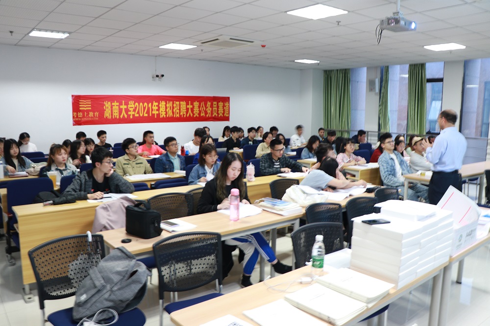 研究生院楼B402举行,考德上教育张安威老师主讲。解析会上,工作人员为在场学生发放试题解析册,老师首先介绍了公考的录取分数层次,分析了公考的现状及问题,然后结合本次试题“党旗永远飘扬在第一线”,对申论写作进行指导。老师耐心引导同学,结合生活实际,循循善诱,深入浅出,为大家讲解典型题型,总结做题方法,在场学生受益良多,获益匪浅。接着,老师针对面试流程、结构化面试典型题型等方面为大家科普面试的相关知识,帮助大家更好地走近结构化面试。最后,老师现场公布本次笔试成绩及决赛名单,共20人晋级决赛。