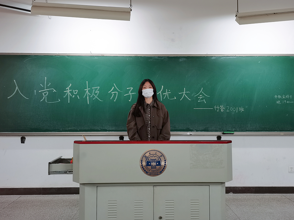 行政管理2001班团支部于综合楼105教室开展团支部入党推优大会。会议由团支书高晓蕾同学主持,行管2001班全体同学参加,团委组织部干事高泽群同学全程监督。