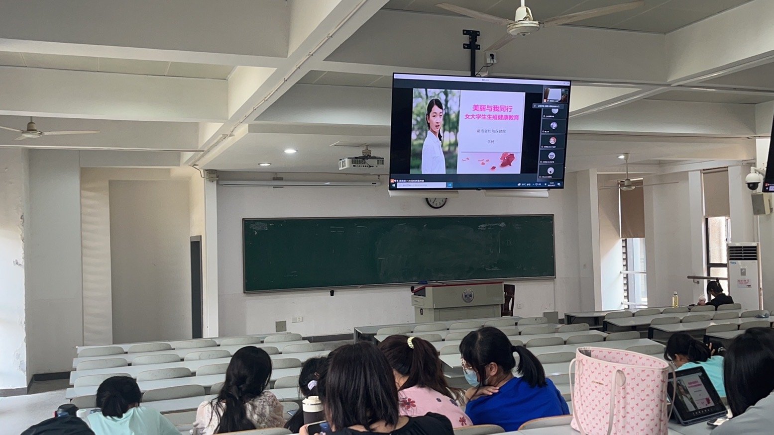 全体女生在综合楼209教室集中观看了由湖南省妇幼保健院副主任医师李杨医生主讲的以“关爱女生健康,呵护青春花蕾“为主题的女大学生生理健康教育讲座。