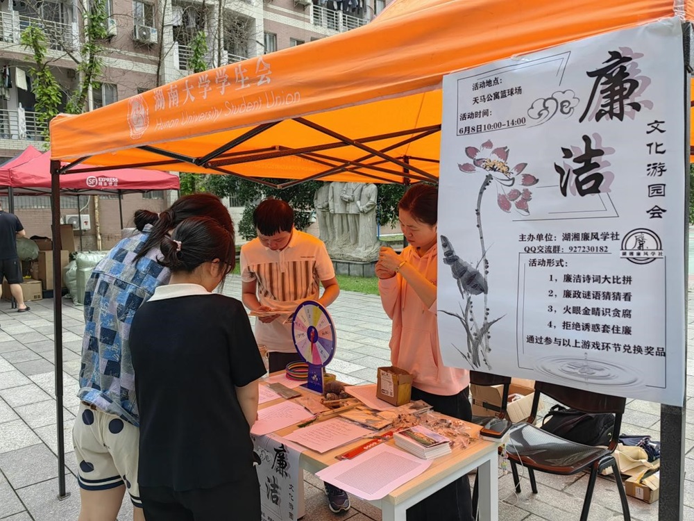 2024年6月8日,湖湘廉风学社于天马公寓篮球场成功举办了“廉洁文化游园会”活动。