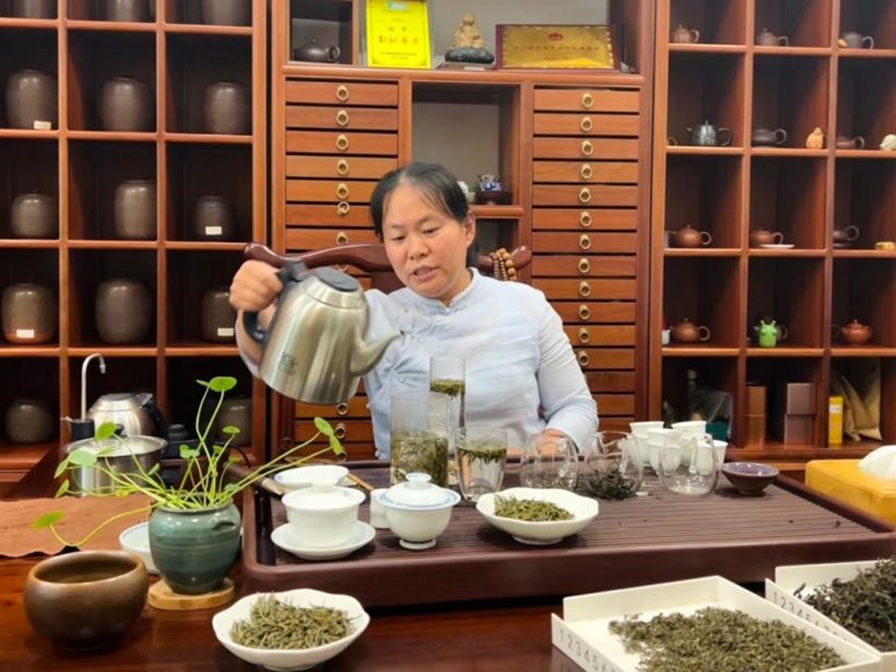 在对当地环境治理方面进行调研后,实践团来到当地特色茶馆,了解岳阳特色黄茶产业的发展情况:当地以“君山银针”知名茶种打破黄茶壁垒、扩大宣传度,致力于解决技术、传承、品种突破等种种难关,发展岳阳特色茶产业,既是宣传传承世界级非物质文化遗产的有利方式,也能够提高当地居民的收入水平。