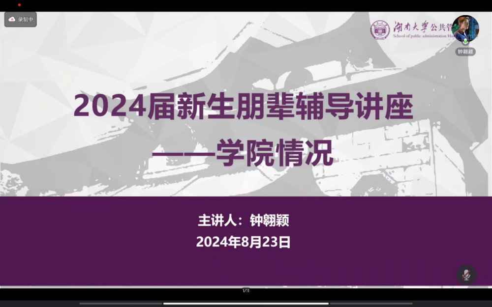 历史悠久、底蕴雄厚、科研学术实力强大,目前设有行政管理与城市管理两个专业,其中行政管理为国家级一流本科专业,已经建设成了一支能力强大,潜力巨大的教师队伍并形成了本科生导师制度等学院特色培养制度。钟翱颖学长还结合自己的经验介绍了学院的学生工作等多项培养特色并就新生对于体测、双学位、四六级、课程安排等疑问进行了答疑。