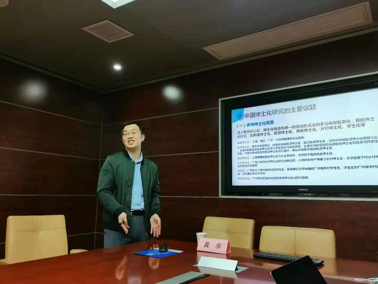和中国城乡建设与社区治理研究院联合主办、城乡发展与环境治理研究所承办的“城乡发展青年学者沙龙”在法学楼405室精彩开讲。华南理工大学建筑学院黄幸副教授受邀担任首场活动的主讲嘉宾,做了题为“场域——资本视角下的中国绅士化研究”的学术报告。城乡发展与环境治理研究所王斯亮老师、谷浩老师以及二十余名博士、硕士研究生和本科生参加了此次活动。