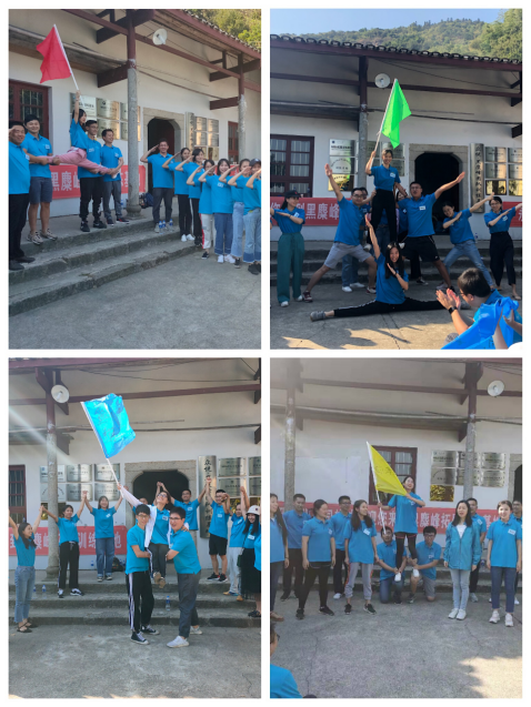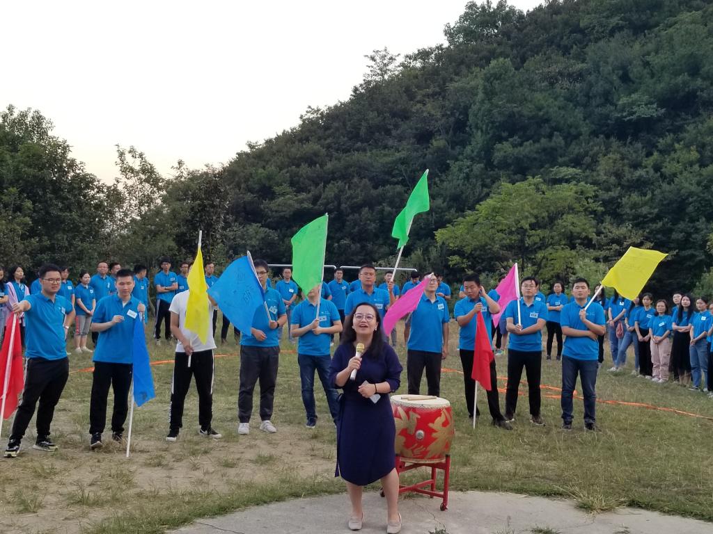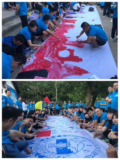 训练有素的就餐完毕后,进入 “团队组建PK环节”。在迅速组队和记名字互识后,10个队伍各推出了队长,并分队画队旗,起队名,喊口号,唱队歌,列队雕,各小组成员相互配合,异彩纷呈,彼此间的距离感进一步拉近,成功“破冰”