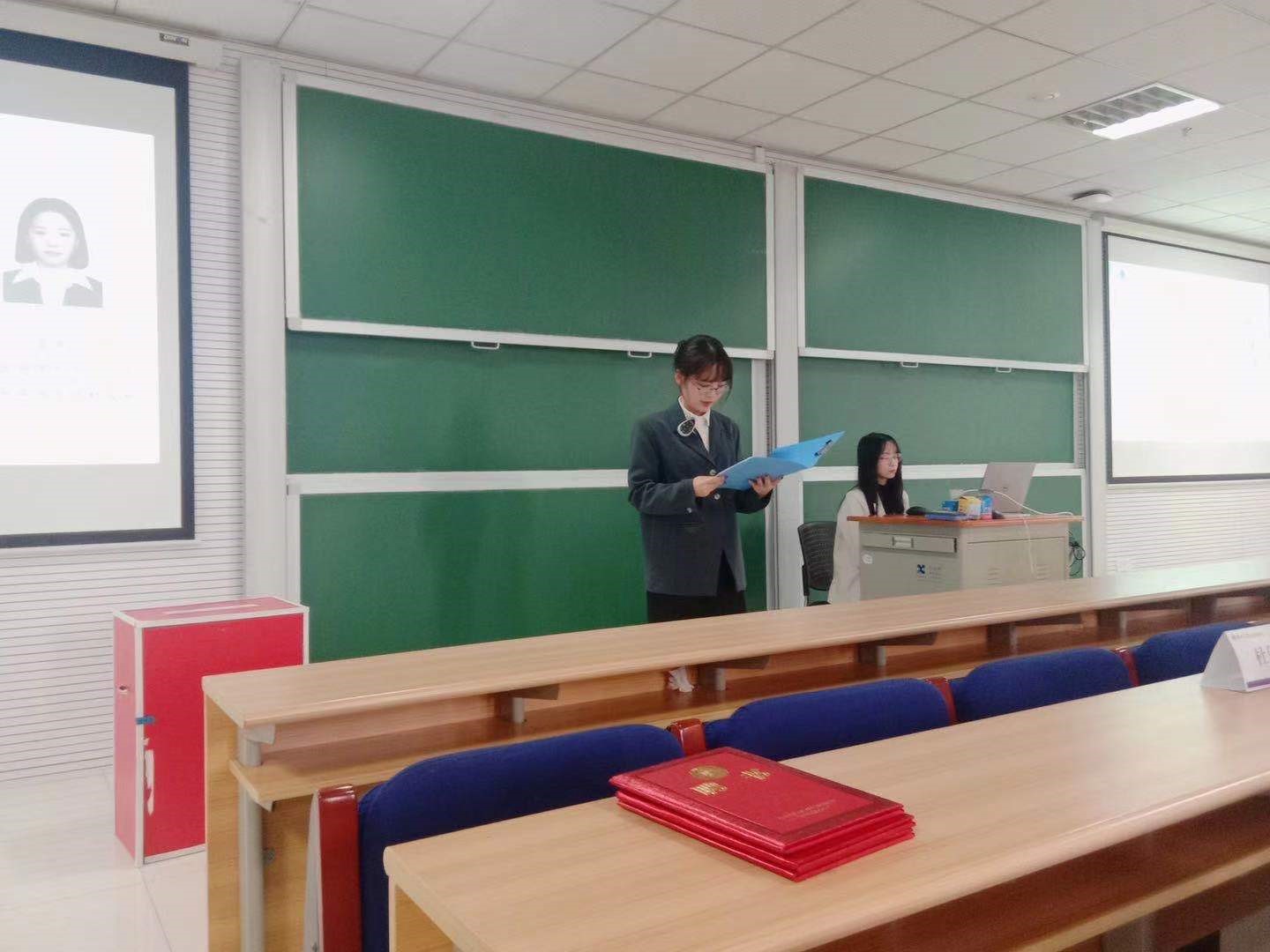 在投票通过监票人、计票人名单后,各位候选人开始竞选演讲,向参会人员介绍了自己以往的学生干部任职经历、学习经历以及对竞选职位的展望等。