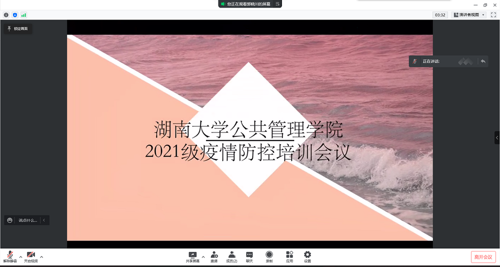 行政管理专业2021级全体成员参会。培训主题为法律法规与行为准则,会议聚焦于学习与解读以下三份疫情防控政策文件:《中华人民共和国传染病防治法》、高等学校新冠肺炎疫情防控技术方案(第五版)。