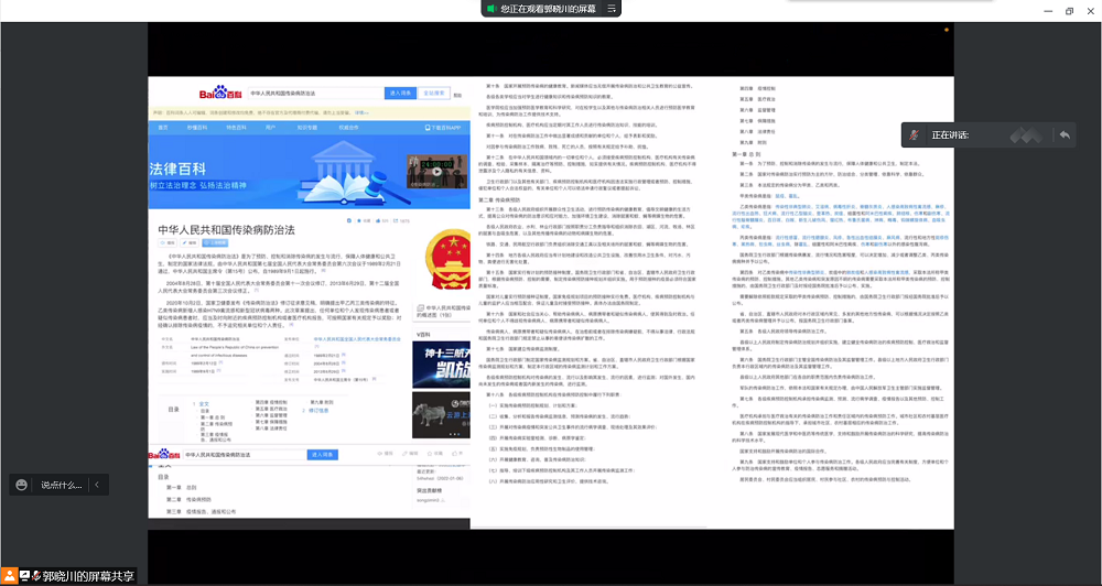 会议伊始,郭晓川同学带领全体成员对三份疫情防控政策文件进行学习与解读,基于此,同学们对新冠肺炎疫情相关法律法规与行为准则有了较深的理解与感悟。随后,同学们积极发言讨论,结合实例对刚学习的政策文件进行分析、解读,会场气氛十分热烈。