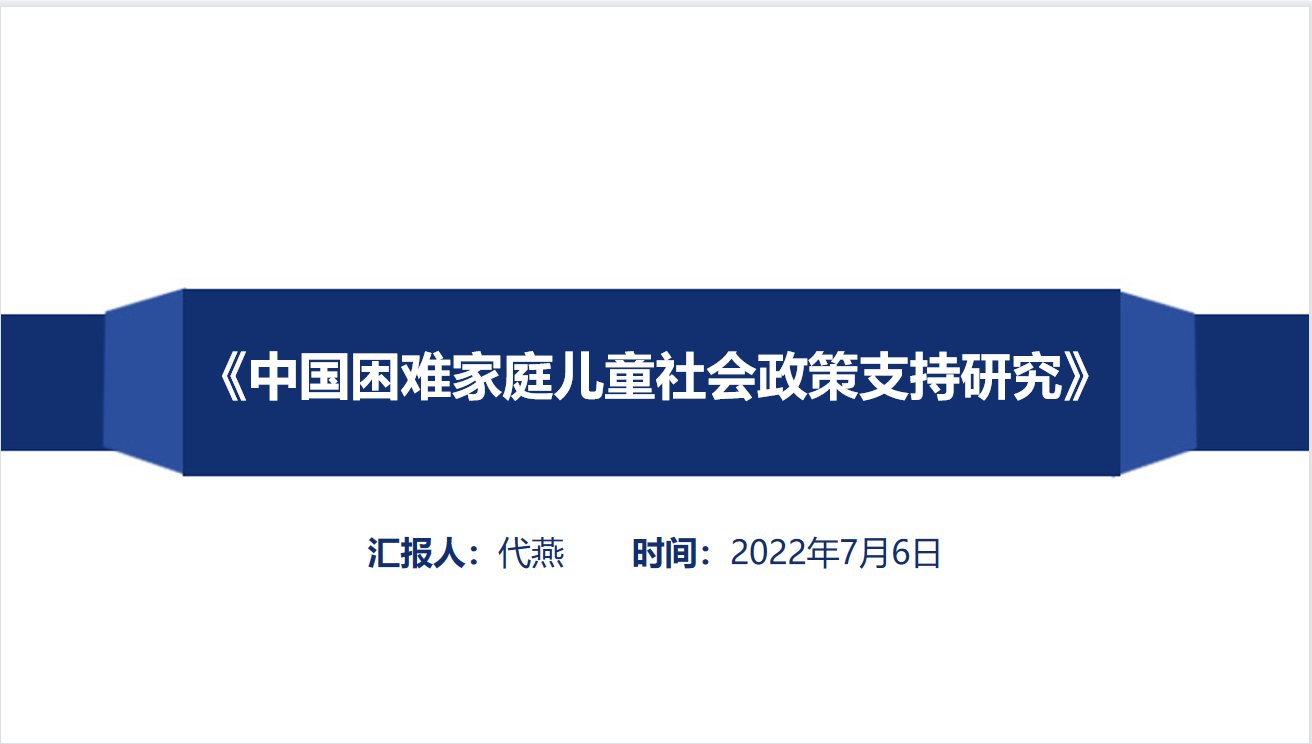 代燕同学围绕中国困难家庭儿童的社会政策支持进行了精彩展示。在我国致力于打赢脱贫攻坚战的背景下,我国的困难家庭的儿童呈现出多维贫困的状态。父母的就业情况、受教育程度、是否离异、性别、居住地、社区服务都是儿童多维贫困的影响因素。最后提出的感悟引人深思,相较于过去“由点到线,由线到面”的问题探索路径,“由面到线、由线到点”的路径更能够体现社会的温度与人文情怀。