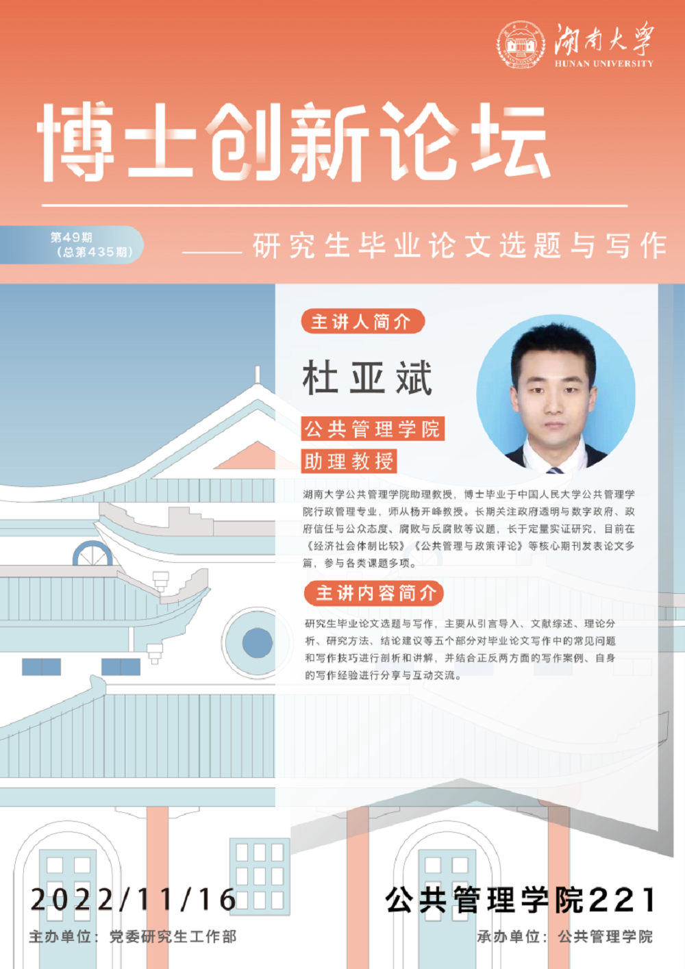 助理教授杜亚斌老师受邀担任本场活动的主讲人,做了题为“研究生毕业论文选题与写作”的主题讲座。 日本adultvideo
