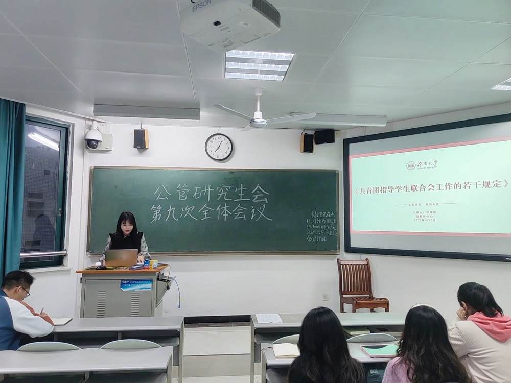 会上,新媒体中心负责人范倩茹带领研会全体成员深入学习了《共青团指导学生联合会工作的若干规定(试行)》。随后各部门依次对近期工作进行汇报,就“研麓同行”计划、公众号“研途成长”版块、博士沙龙和校友讲堂讲座、“青春有约”和解压游园会等重点工作以及新闻推送、专题调研等常态化工作做出复盘,各部门反思了工作中存在的不足,规划了下一阶段的工作重点,总结了可供其他部门参考的工作经验。
