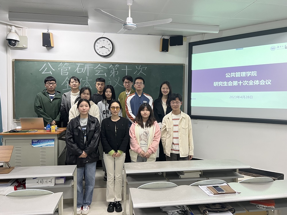 财院校区水上教学楼502教室召开。综合服务部干事庞腾佳主持会议,研究生会全体成员参会。