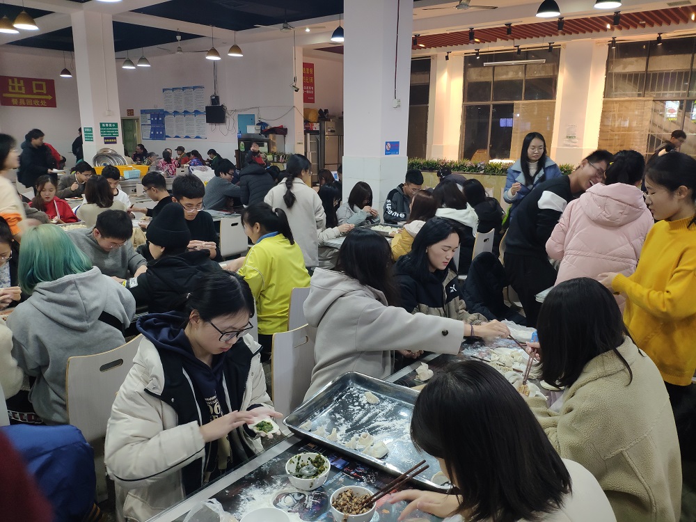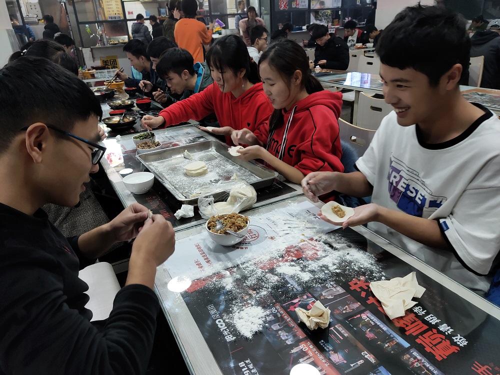 包饺子活动中,同学们共分成八组,每组同学分工明确,热情高涨,各个都摩拳擦掌,拿出了自己的看家本领,擀皮、拌馅...不久后便包出一盘盘形状各异、富有特色的饺子。随后,热气腾腾、令人垂涎欲滴的饺子出锅,同学们边吃边谈论各自家乡冬至的习俗,分享着自己对于传统节日的看法,以及表达自己对美好节日的祝福。吃着自己辛勤劳动的“果实”,同学们脸上洋溢着幸福与满足。为进一步活跃现场气氛,年级会成员还组织同学们进行了你划我猜、谁是卧底等趣味游戏,现场气氛再一次推向高潮,充满了欢声与笑语。