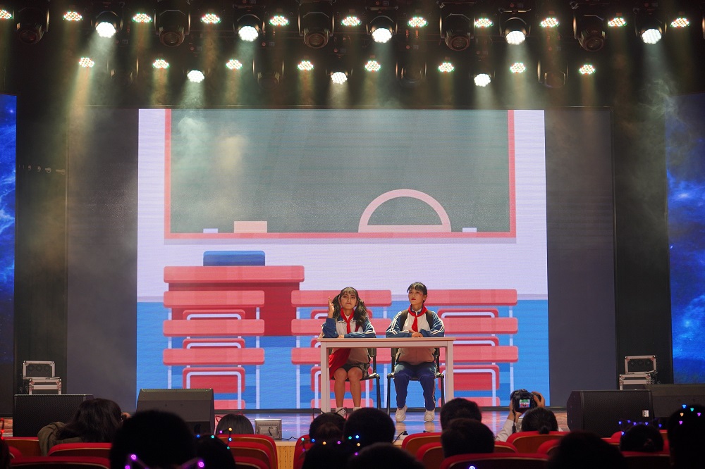 接下来,来自行政管理1901班和1902班的 “葫芦六兄弟”将音乐作为一种情感载体,用古风诠释爱情,用音符连接家乡与梦想,用电音配合双截棍打出最炫酷的律动,给观众不一样的音乐体验,收获全场的掌声与喝彩。在阵阵的惊奇和赞叹中,费梓萱、桂滨钰带来的双人舞《少年的你》用优美高超的舞姿再次展示了电影的主题,展现不一样的少年的你。在余音绕梁中,行政管理1901班的默剧《人生》,展现了一对青梅竹马的一生,幽默又不失真情,搞笑与真理并存,时不时令观众捧腹大笑。
